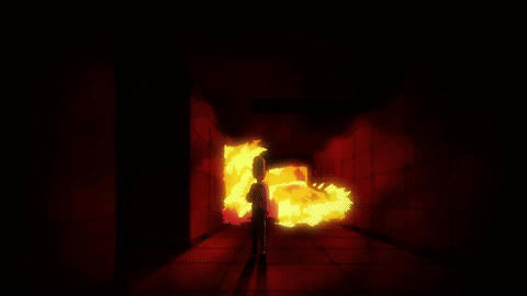 Le animazioni di questa scena non sono così sorprendenti, ma sono accompagnate da delle ottime inquadrature, risultando infine in una scena di grande impatto visivo. Osservate come Teruki si aggrappa alla spada: si inizia da lontano e poi si passa direttamente alla key Animation successiva nella quale è estremamente vicino ad essa. Quella è una scelta che risparmia tantissimo tempo allo staff, ma che allo stesso tempo non sfigura grazie all’intelligente inquadratura.