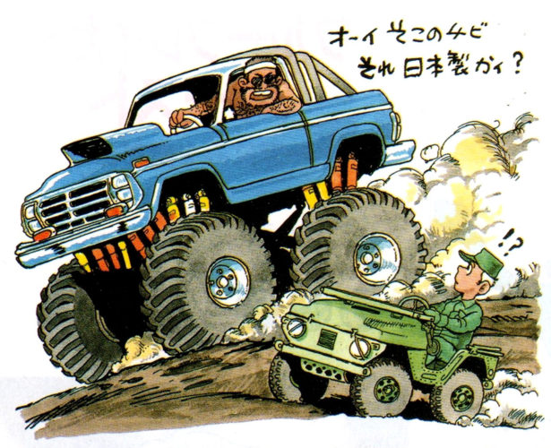 Mitsubishi, il competitor di Toyota, decise di contrattaccare acquistando la licenza delle Jeep di Willys e poi producendole stesso in Giappone. A differenza di Toyota, Mitsubishi continuò a produrre quel modello apportando soltanto iterazioni marginali e piccoli rinnovamenti, come, ad esempio, aggiungendo nuovi motori e stili di carrozzerie. Sorprendentemente, Mitsubishi continuò a produrre le sue Jeep (tutte praticamente identiche a quelle che producevano negli anni ’50) fino al 1998, quando le crescenti norme sulle emissioni li costrinsero ad interromperne la produzione. Il caso vuole che proprio quell’anno Otsuka pubblicò il suo CD-ROM.
