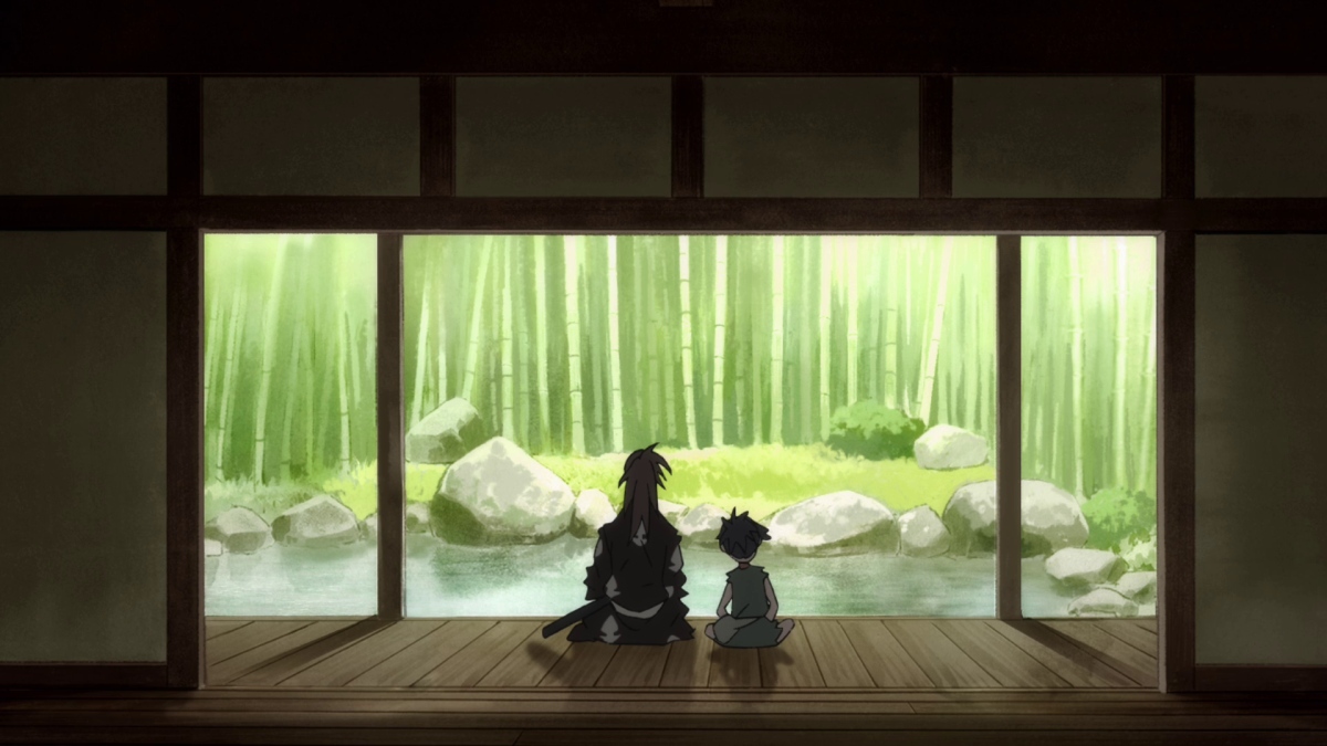 Il sipario del quindicesimo episodio di Dororo si apre stimolandoci l’udito. Due sono i suoni che possiamo distinguere sin da subito: il primo lo avremmo sentito comunque, quello di un flauto (笛, fue) tradizionale giapponese, volto ad evocare sensorialmente l’epoca passata in cui si ambienta la serie. Il secondo invece lo sentiamo perché c’è Kobayashi, ed è quello dell’ambiente circostante, in questo caso la natura. Manca molto poco affinché ce lo dimostri di nuovo con altri mezzi, ma sin dai primissimi secondi dell’episodio possiamo già intuire l’intenzione del regista di creare immersività, come se volesse trascinarci in quel Giappone dell’era sengoku.
