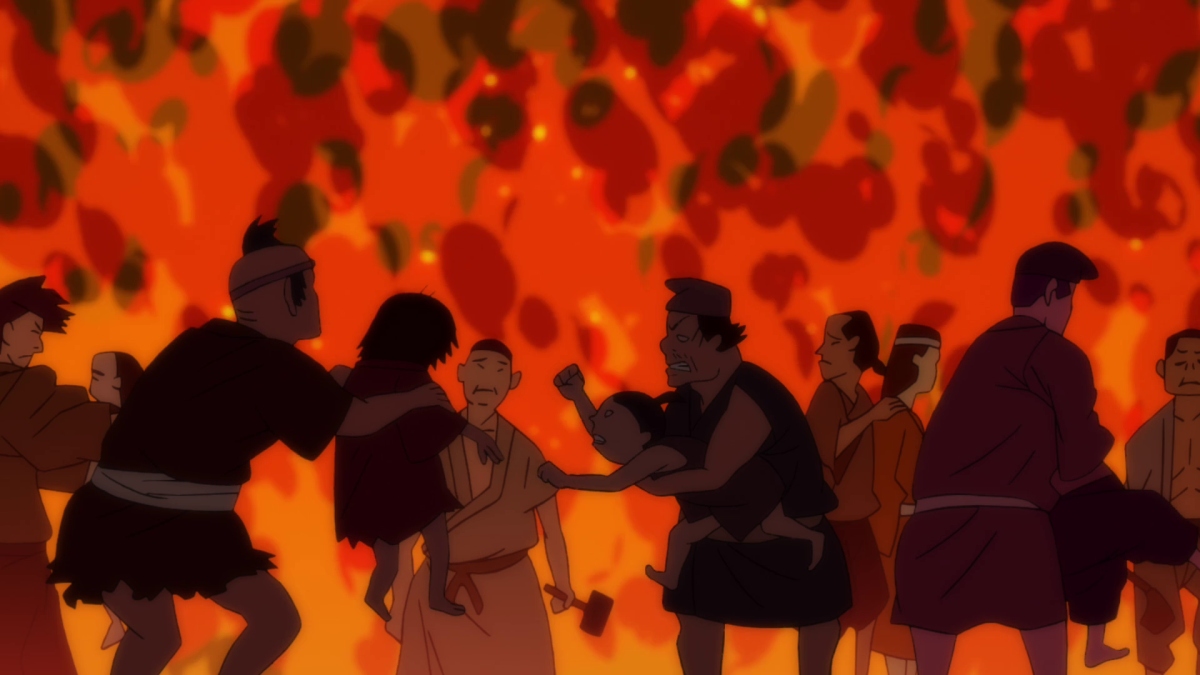 Una volta raggiunto il luogo prefissato ecco che inizia la fatidica conversazione tra il Lord e Hyakkimaru. Il primo confessa la sua vera natura, e nel farlo mette a nudo tutti i suoi sentimenti d’amore nei confronti del villaggio in cui è nato e cresciuto. Ecco quindi che tutto il lavoro svolto finora da Kobayashi acquista un nuovo senso. L’immersività che ha creato non è più un semplice marchio di fabbrica da dover mostrare, bensì uno strumento attraverso il quale collegare lo spettatore con l’unico mondo che il Lord ha mai conosciuto. La storia ci sta preparando ad una tragedia, e fino ad ora la regia non ha fatto altro che tentare di renderla più dolorosa.